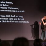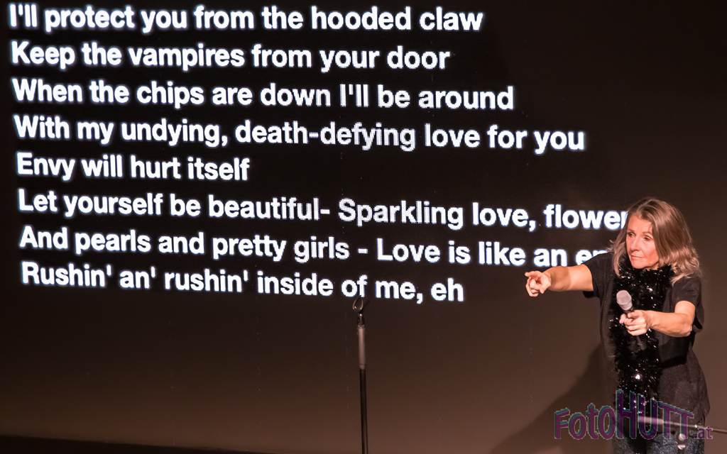 Texte natürlich für alle gut lesbar auf der Bühne. Hintergrundgeschichten zu den Liedern natürlich inklusive und niemand wird ausgeschlossen, oder aufgefordert still zu sein, wie damals in der Schule. Jeder Abend steht unter einem anderen Stern, bedient ein anderes Motto, ist einzigartig.